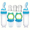 7pcs Baby Feeding Set: 2pcs Soft Silicone Feeding Bottle with Spoon,2pcs Fruit Feeder Pacifier with 3-Size Nipples