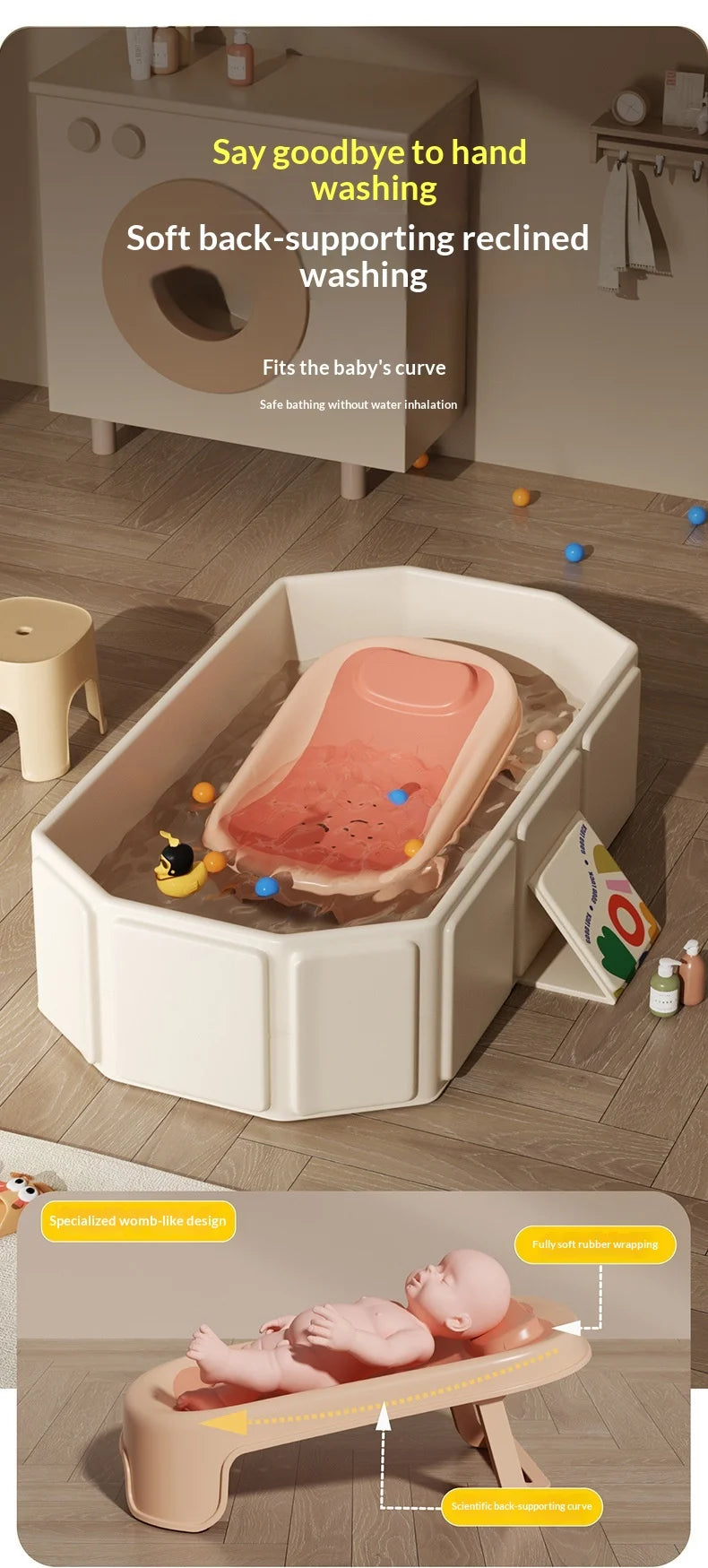 Large Baby Bathtub 0-5 Year Old Children Foldable Tub Babies Sit Lie Down All-in-One Newborn Bathing Basin Keep Warm Baby Tubs